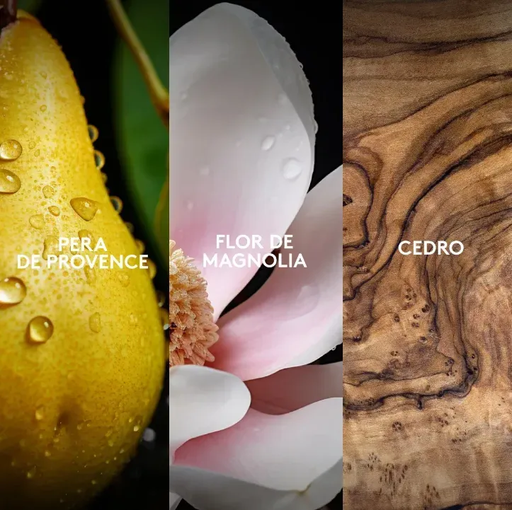 Eau de Parfum de mujer con aroma floral frutal de alta concentración* y larga duración, creada con el proceso Esset Tech** e ingredientes exclusivos. Con brillantes notas de pera de Provence que se fusionan con la elegante esencia de flor de magnolia y cálida madera de cedro, inspirado en la mujer a...